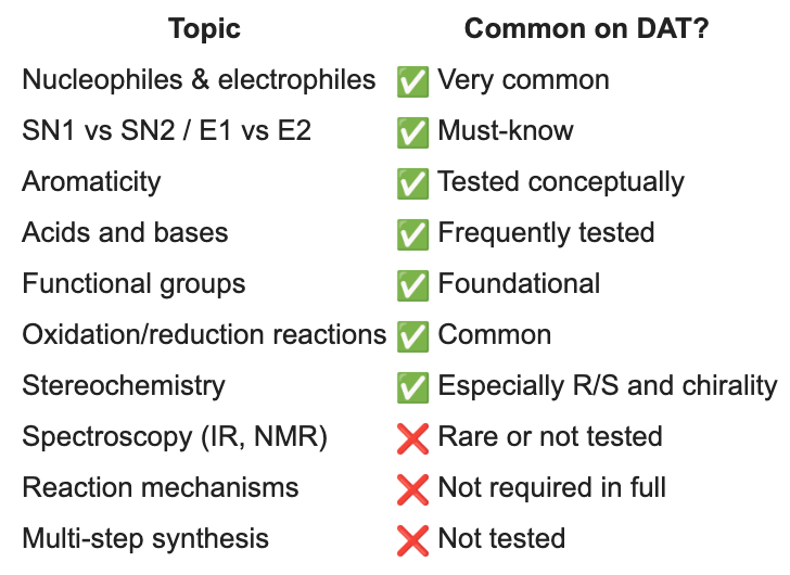 ✅ Good news: If you’ve survived Organic Chemistry in college, you already have most of the tools—you just need to refocus your study on what’s actually tested on the DAT.
