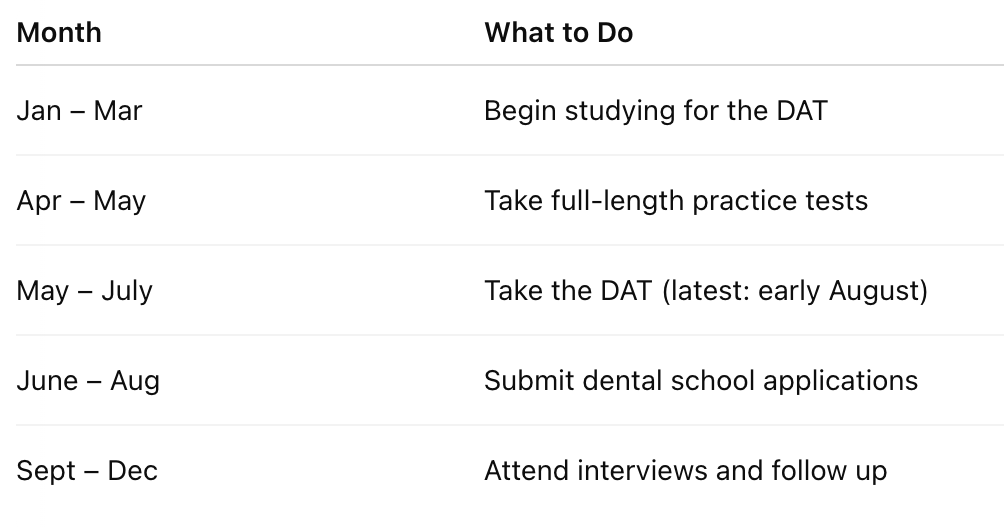 Ideal DAT Timeline (If You're Applying This Cycle)